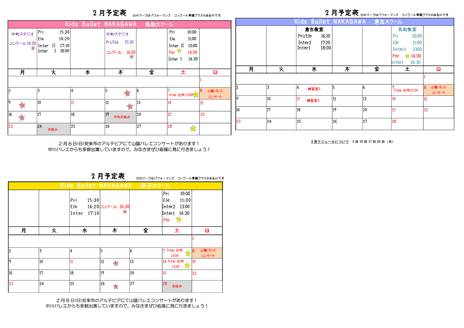 鳥取市、倉吉市、米子市で中川バレエのキッズコース開催。2才〜12才のお子様を対象に、芸術に対する完成を育み、レッスンを通じて健全な心身と情緒豊かな子供を育てることを目的としています。 また、無料の体験・見学を行っています。 また年齢やレベルに応じてクラス分けを行っていますので、初めてのお子様も何歳からでも安心して始められます。
