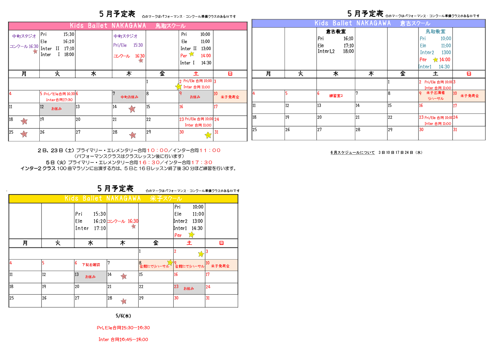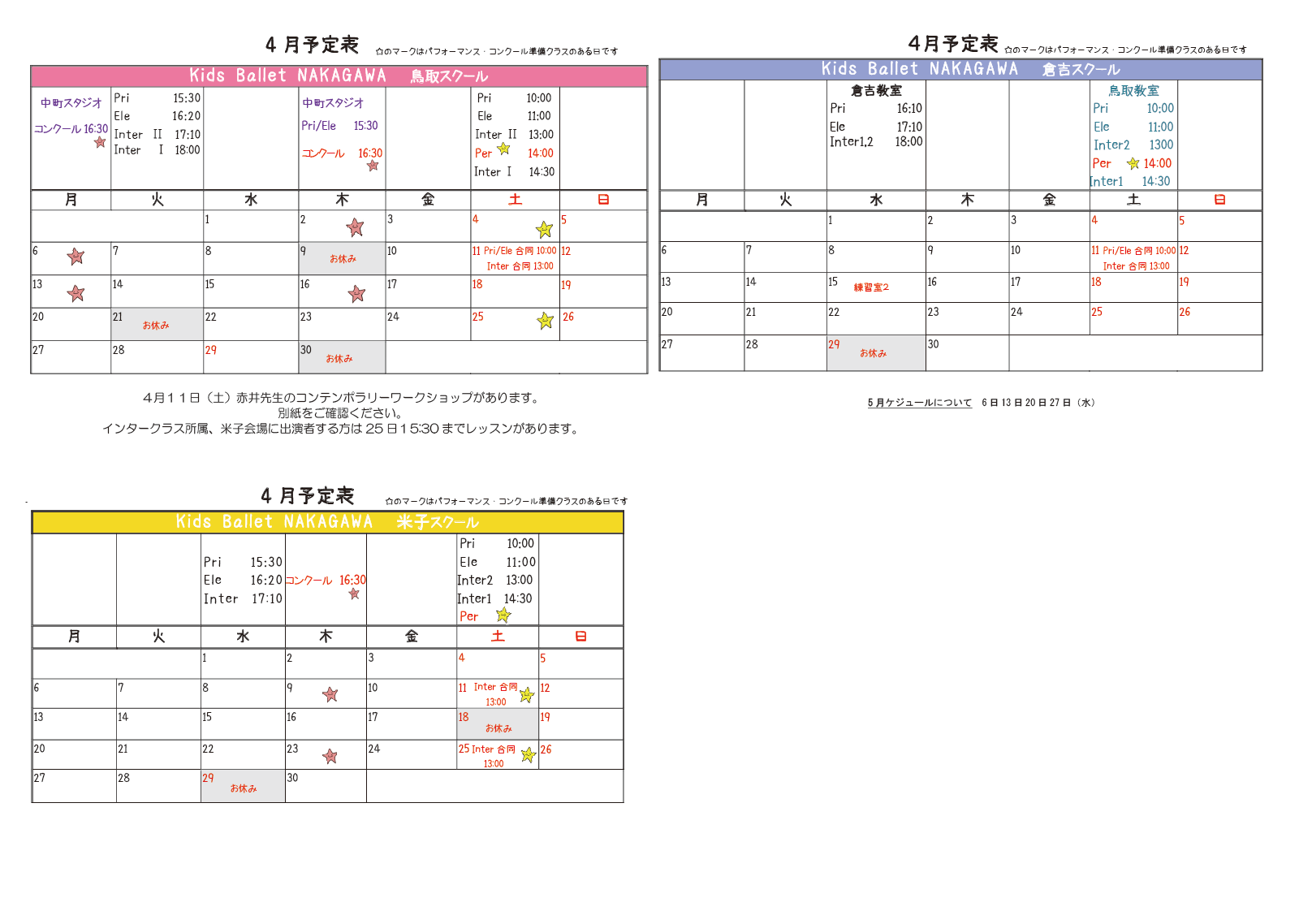 キッズバレエのスケジュール